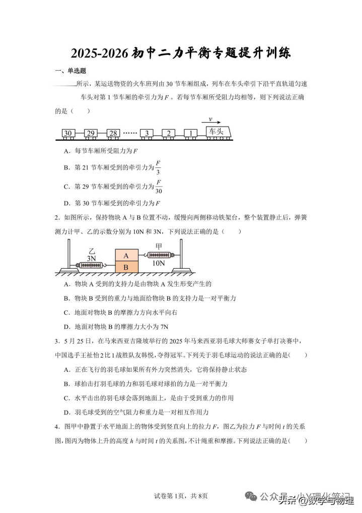乐鱼体育官网 八年纪下册物理寒假学习札记8.2二力均衡讲义全解及基础考查题